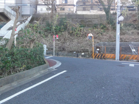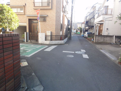 最初の角を左折前の突き当りの延長線の道へ。 |