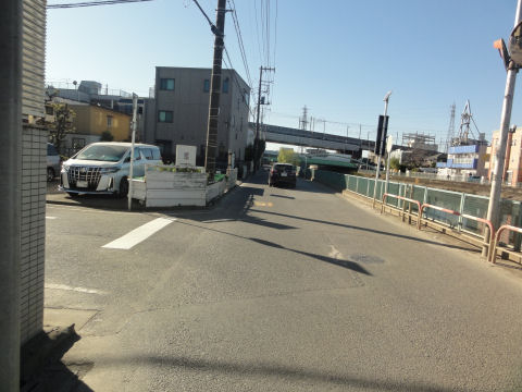 突き当りは橋へ続く道突き当りの道は橋があるので交通量も多い道。 |