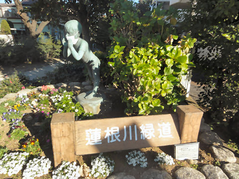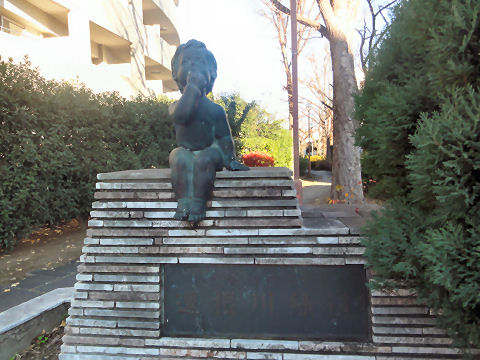 ここも緑道の一部入口には子供のモニュメントが。 |
