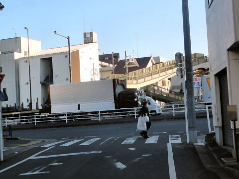 左の歩道は切れている渡りきると交番があるが歩道は切れている。。 |