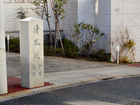 曲がり角には清水坂の石碑いわれを書いた説明版もある。 |