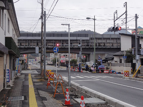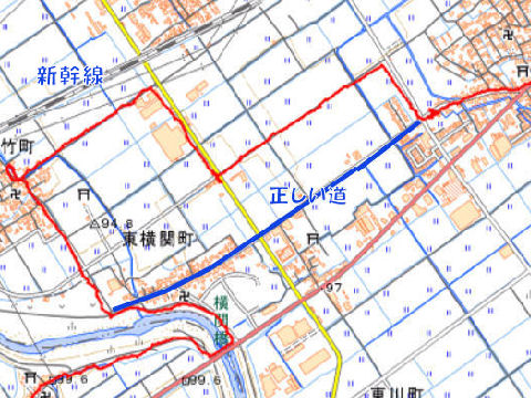 昨日のゴール地点、新幹線ガードへ駅南口をまっすぐ進む道がぶつかる所が新幹線ガード。 |