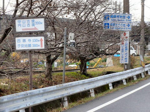 このあたり古墳が多い新幹線と古墳の間を進んでゆく。 |