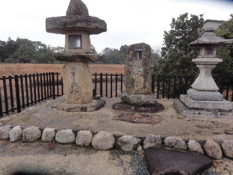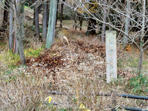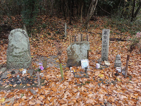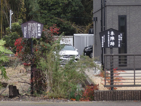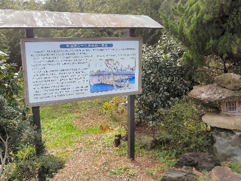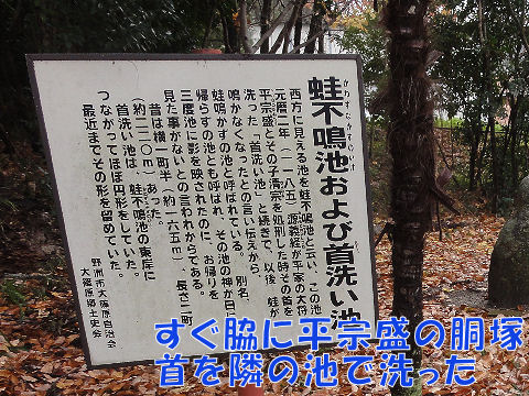 平宗盛の胴塚と首洗い池道路から少し入った所に案内板。