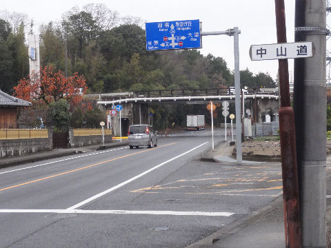急に車が増える静かだった旧街道だが交通量が増えて広くなった。 |