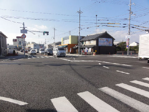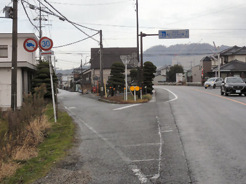 狭い旧道だから国道8号は家並みを外れた位置を通る。 |