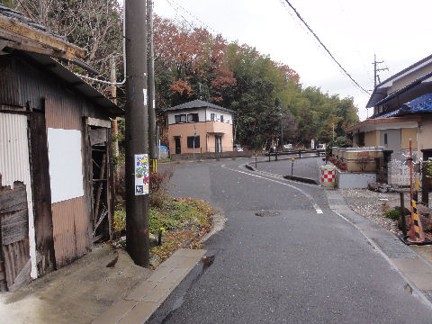 堤防から降りる道堤防上の道は西へ曲がっていたので並行して戻る道が正しいのだが、錯覚し北へ進んでしまった。 |