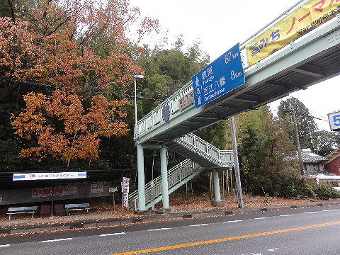 反対側には歩道橋で向かい側は歩道がないが、このあたりだけは歩けるスペースあり。 |