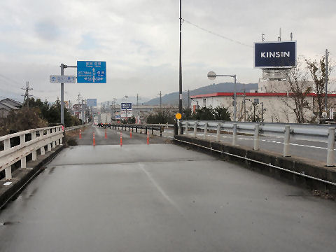 国道8号線へ合流、右手には西池池の堤防が高く水面は見えない。 |