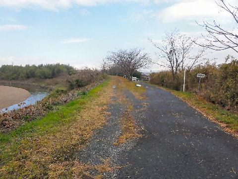 左の堤防上を進む細い草の道が堤防のみち。 |