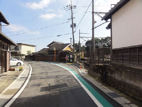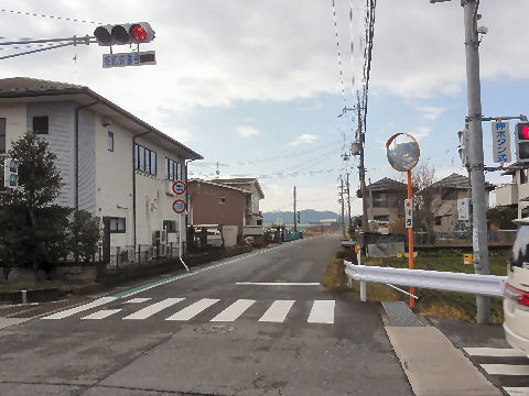 右手から近江鉄道が右手を走っていた近江鉄道が横切っていく踏切、電車は1時間2本。 |