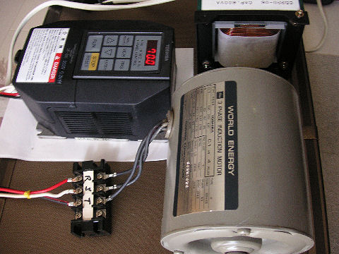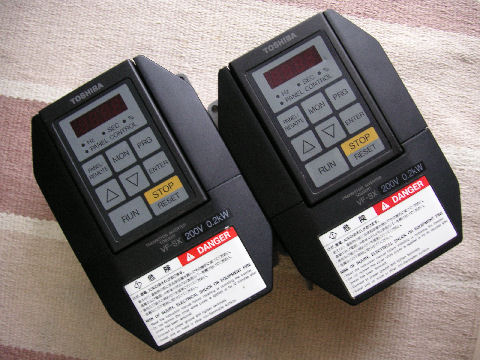 端子台などに錆がみられるがパネル運転では問題無く動作。IGBTになる前の製品でキャリア周波数が低い(最大3KHz)ので電磁騒音が目立つが。 |