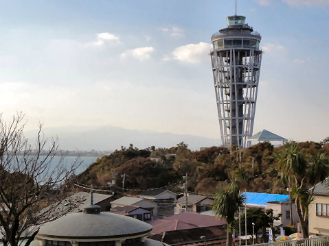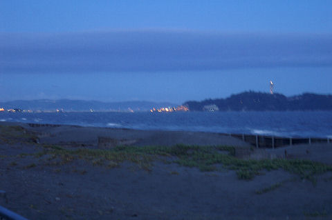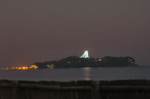 江ノ島・シーキャンドル最近始まった江ノ島展望台のライトアップ、今年は期間も点灯時間も短い感じ。見損なわないうちにと夕暮れ時に海岸まで見に出かけた。 |