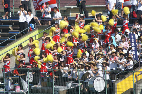 8297歩応援団とブラバンは慶応藤沢が充実と思いきや、市立横浜東が圧倒するという結果に。慶応もブランドに頼っていては勝てそうもない、ユニホーム・旗など全て慶応大そのままだが、ブラバンやチアガールは大幅見劣り。 |