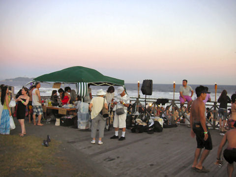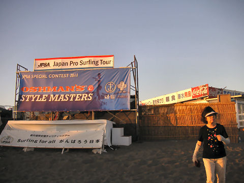 海岸では波高いがサーフィン大会台風接近のなか開かれていた?サーフィン大会。夕方にはもう店仕舞いしていたが、茅ケ崎あたりでは結構な人だかり、まだ来る人も結構居て。 |
