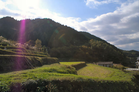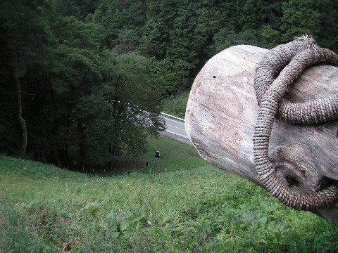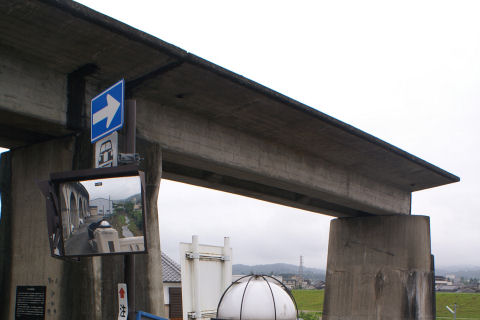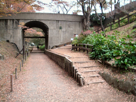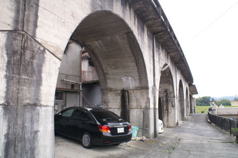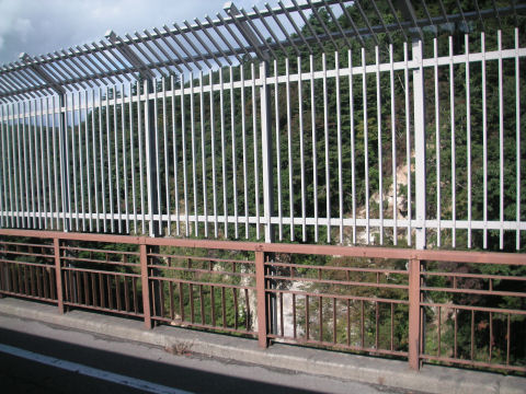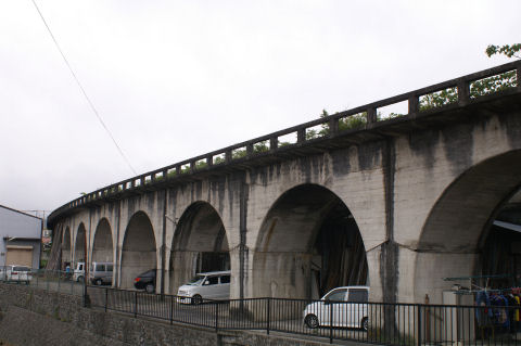 幻の五新鉄道の遺跡?五條から新宮まで計画され、結局開通しないまま廃止になった五新線の橋脚などがそのまま 残っている。もっと古いものかと思ったが比較的最近まで工事が行われていたのか、そんな に古さを感じないコンクリートの高架橋。 |