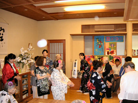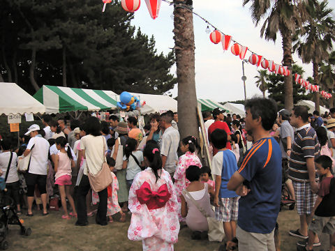 近所の公園の盆まつりどこにこんなに人が居るのかと思うくらいの人が集まり、食べ物の店はどこも長蛇の列。暗くなってからは打ち上げ花火もあって盛り上がっていた。 |