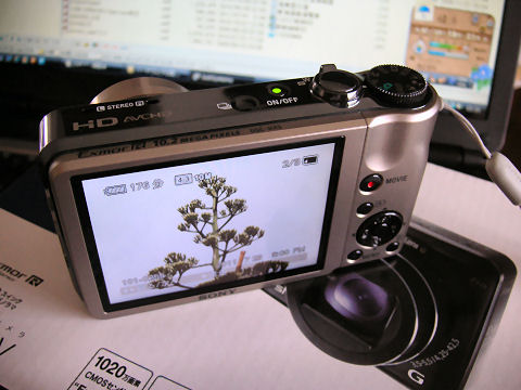 旅行用のカメラ購入パノラマ撮影、ハイビジョン動画が撮影できる、GPS機能があるという特徴を評価して、このSONYのDSC-HX5Vを購入(中古で12800円)、併せてAMAZONで16GBクラス4のSDカードも購入した。 |