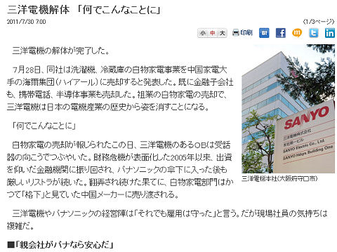 一方、三洋電機は売却へ