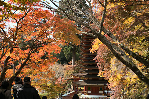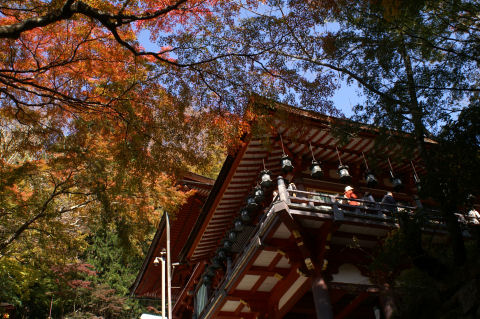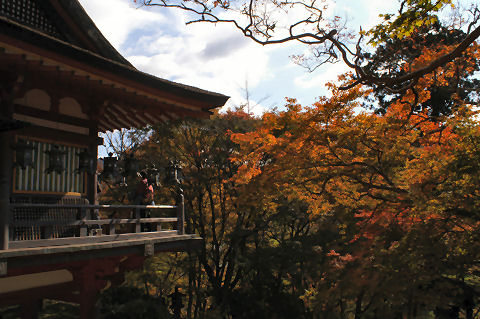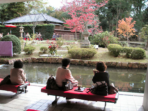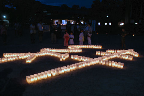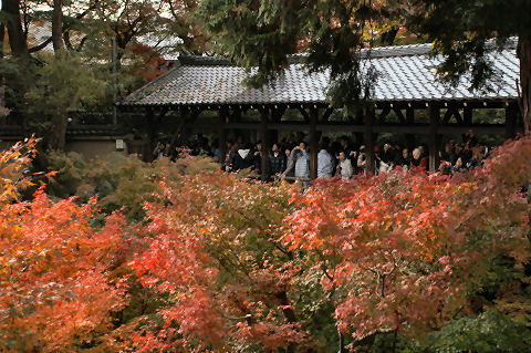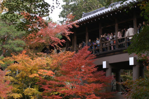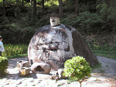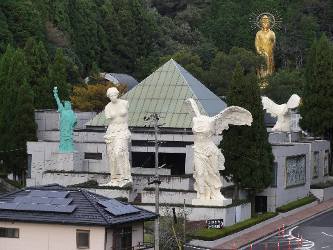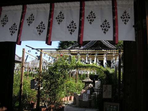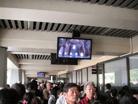 電電神社も早めに着いたので渡月橋を渡り、法輪寺へ。拝観料無料、電電神社という電気と通信の神様が祭られている、入り口にはエジソンとヘルツのレリーフが付いた電電塔などというものもある。沢山の大型プロジェクタを使ったイベントもあるようだが、時間が遅くなると帰りが込むのでパス。(デジタル掛け軸なるイベントのよう) |