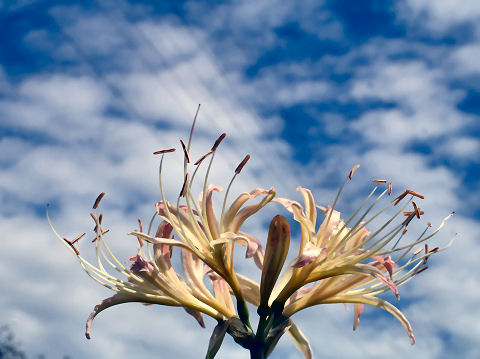 リュウゼツランの花近所の公園で3本のリュウゼツランに花茎が出て近いうちに花が咲きそうというので見学に。まだ開化にはしばらくかかりそう。去年も咲いたとか、40数年前に植えられたそうだが次々開花して枯れてゆく。 |