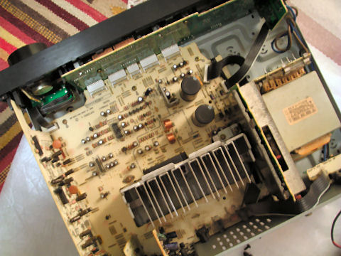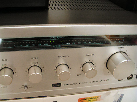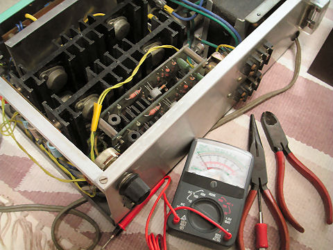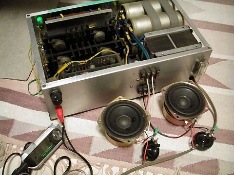 オークションでは「電源入らず」となっていたので到着後、裏ふたを開けてヒューズをチェックしたが異常なし、電源を入れてみると通常動作、CD音源を繋ぎ連続動作チェックしているが現在まで問題なし、どこがジャンクだったのだろう? |