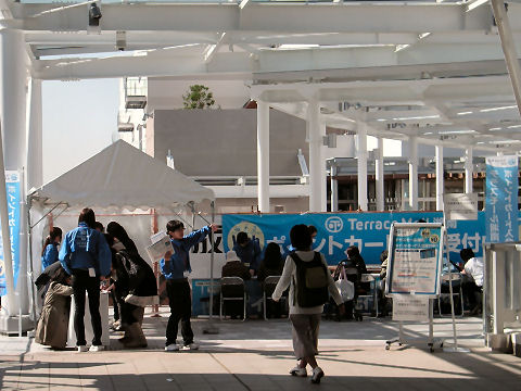 相変わらず混雑のテラスモール土曜の午後ということもあり食事処は大混雑、メディアに取り上げられる回数も多く、結構遠くから来る人もいるよう。その証拠に辻堂駅東改札を出たところに矢印のサインが多数、きっと駅員さんが何度も聞かれたのだろう。確かに東口改札を出ると左右に分かれ、南口・北口となってしまうので迷うのかも。 |