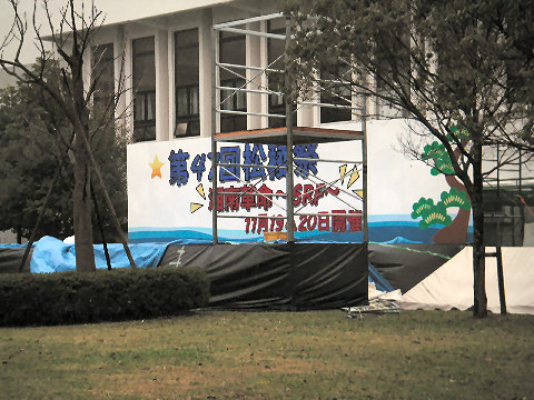 近所の交差点付近には例年の通り、正月の駅伝に伴なう交通規制の看板が表れた。もう年明けは遠くないという実感。 |