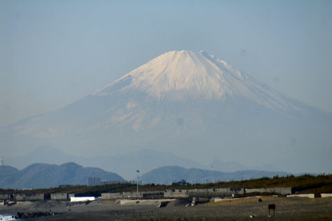 冬の富士山天気が良いので海岸まで撮影に、レンズが悪いようでシミ?が写っている(これは安い70-201mmズーム)。 |