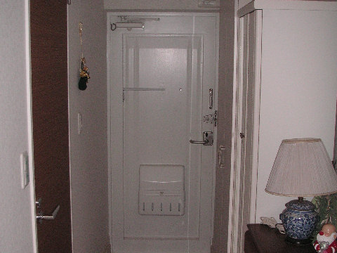 ドアは公団規格の鉄板一枚から吸音材?を鉄板でサンドイッチしたものへ交換、もっともこれは騒音対策工事の前から予定されていた内容。 |