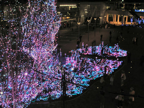 ライトアップ・その2映画が終わり外へ出るとイルミネーションが綺麗、この前は色が変わってゆくのは見られなかったが今回はきっちり見て動画も撮影した。相変わらず人が多いし、遠くから来ている人(身なりをみれば解る)も多い。 |