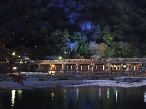 嵐山地区のライトアップ「花行路」が今日までとなっていたので早めに出かけて写真を撮ったらさっさと帰ってきた。もっと遠いと思っていたが乗り継ぎさえ良ければ1時間ちょっとで嵯峨嵐山駅まで行けると判った、思い込みは怖い。 |