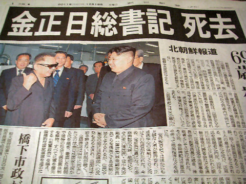 あの狂犬指導者(アホなブッシュだがこれには賛成)が列車移動中に死去、とのニュースが駆け巡った。何をするか誰にも予想も付かない狂気の国家なので皆が戦々恐々。 |