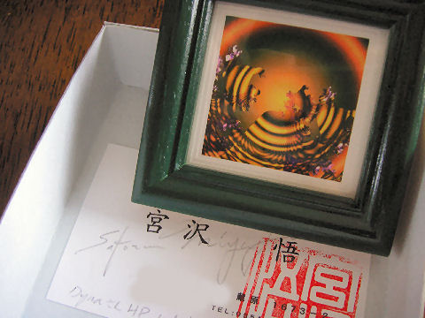 プレゼントを貰ったアマチュアの写真コンテストに投票したプレゼント、これは希望者2名のみで運良く当選、今着払いの宅急便で届いた。 ミニアチュールなので作品サイズは48mm角と小さい。 |