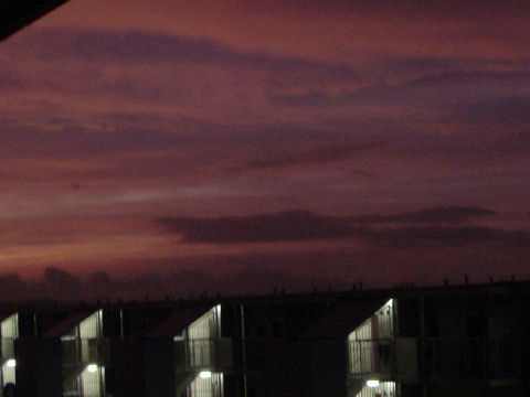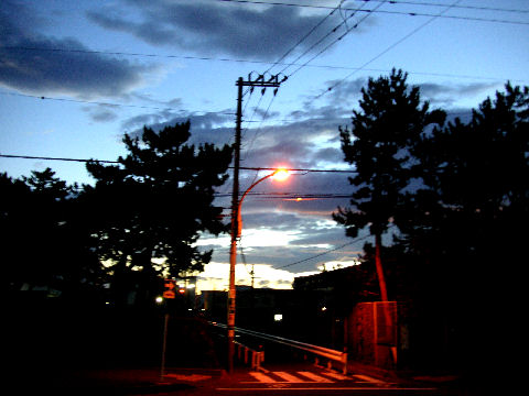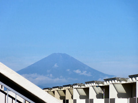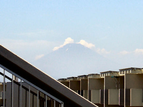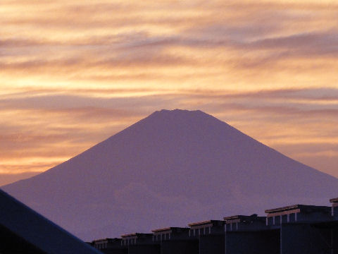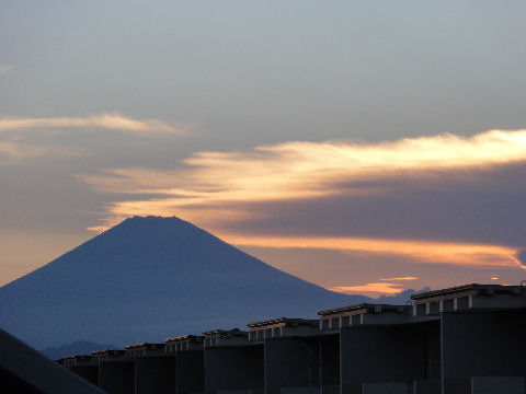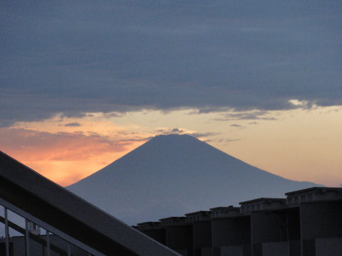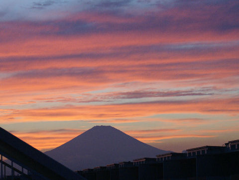 久しぶりに富士山が見えたが空は雲が赤く焼けて異様な風景。 |