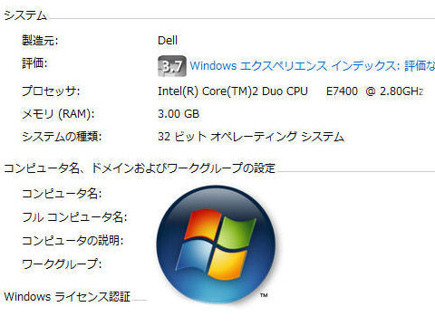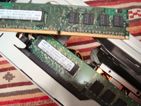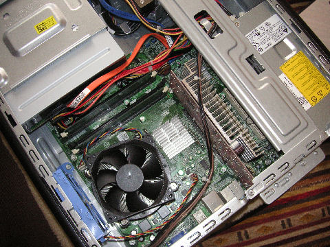 DELL機にメモリ増設し3GBに先日オークションで落札し放置していたメモリを増設、動作確認をした。増設用のスロットはCD/DVDドライブの下にあってアクセスが悪い、メモリがきちんと奥まで刺さったかが解りにくいため、一度やり直しをするはめに。 |