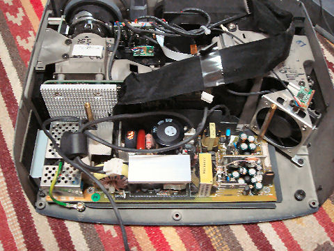 ヒートガンとヒューズが到着ペンディングにしてあった通電せずのDLPプロジェクタ、ヒューズはプロジェクタの基板にあったスローブローのものを交換したが残念ながらうんとすんとも言わず、スイッチング電源の主素子でも壊れているのかな、これは重症。 |
