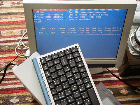 メモリ増設:2GBに落札した512MBメモリ2枚を増設、メモリチェックのソフトで確認し問題なし。少しは動きが速くなった。 |