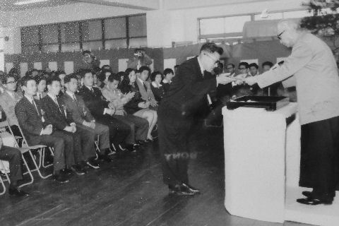 お茶目な学生時代の思い出1971年当時の写真を見つけ出した、我々が実験派だったのに対して理論派で大学の研究者向き、教授になっても飾らない性格であった。研究室見学に何度か訪問したが、学生に研究内容をきちんと説明させるという訓練を十分にしていたのは立派だった。 |
