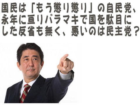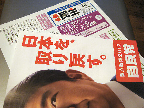 総選挙は予想通りの民主党惨敗こういう結果なると予測さえ出来なかった「無能」の民主党と思わざるをえない「妥当」な結果。でも小泉進次郎が言った通り「自民党が勝ったのではなく民主党があまりにも酷かっただけ」という真実を心して臨まないと次回はまた自民党の惨敗になることは間違いない。なにしろ今の大きな課題を作った責任はほぼ全て自民党にある、それを見通しもなく解決するとおおぼら吹いた民主党が国民を裏切って負けただけ。 |