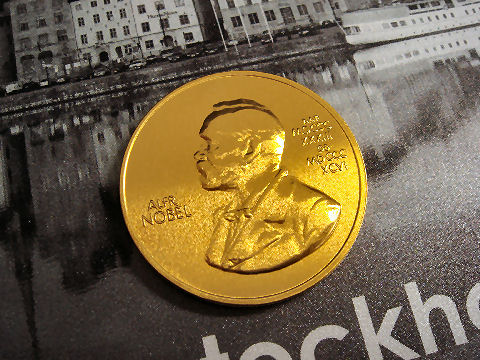 どっちもノーベル賞のメダルこっちは山中教授が授与されたメダルの本物、輝きが違う! |