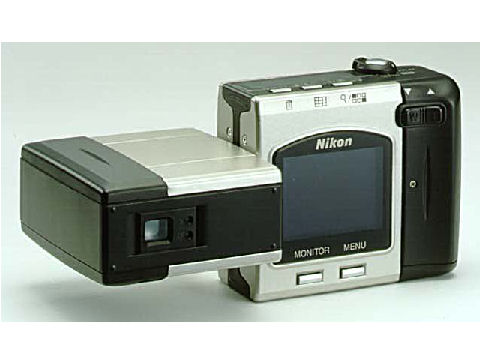 スイベル式の100万画素の本格デジカメとして購入、スイベル部とフォーカス機構が壊れて2回もNIKONに修理に出した。電池は単3が4本だがニッケル水素以外では実用にならない撮影枚数、以降三洋のニッケル水素電池を愛用。高価なパソコン接続キットも購入したが余り活躍せず。オプションでワイコンなども豊富にあった。 |