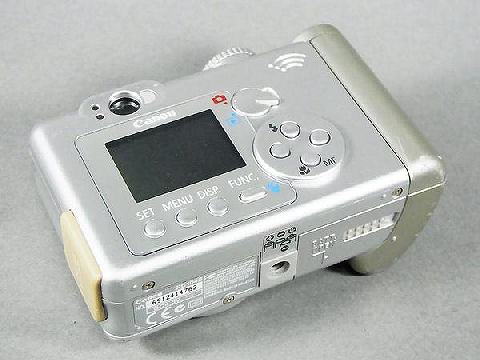 初めてかったキャノンのデジカメ、PowerShotシリーズはIXYより下位シリーズ、プラボディでもっさりしているが良く写ったので結構愛用した。電池は単3−4本なので手持ちのニッケル水素電池を使うことに。 |