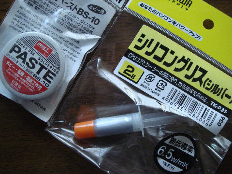 補修遊びに工具などを先に買ったジャンクのパソコンを修理してみようとヒートガンとハンダペーストを購入した。ついでに左の中古パソコンでCPU載せ替え時に必要なヒートグリースもAMAZONで購入。秋葉原までの交通費を考えると割安。 |