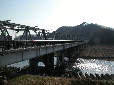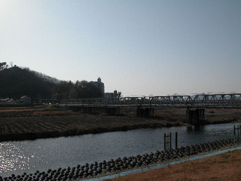 プチ旅行A:渡良瀬橋ついでに「渡良瀬橋」の歌の関連も。一番上は「八雲神社」本当の歌に出てくる神社は先日火事で焼失したようだが町のあちこちに8箇所もあるとか。2番目は「床屋の横にある電話ボックス」、廃止を免れ残っている。最後は渡良瀬橋そのもの、川岸のサッカー場では子供の大会が開かれていた。 |