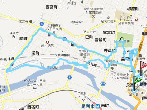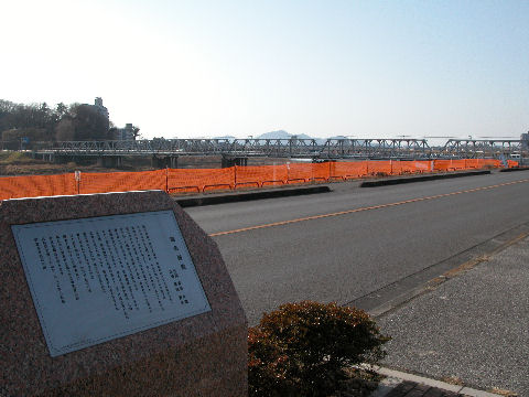 この渡良瀬橋は古い橋のよう、歩道橋は横に追加で設けてある。橋の北側は降りる道が狭く車は通行できないよう。少し下流に行くと「渡良瀬橋」の歌碑があり横断歩道のようなボタンを押すと全曲流れてくるが長い。 |