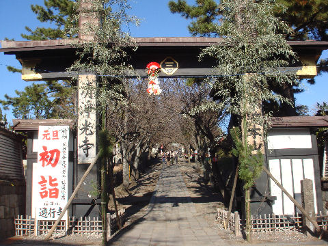 遊行寺へ初詣に不足する年賀ハガキを藤沢郵便局まで買いにいったついでに遊行寺(これは通称)へお参りし初詣で。旧東海道の交差点から西へ行き遊行寺橋を渡って参道を直進してお寺まで。 |