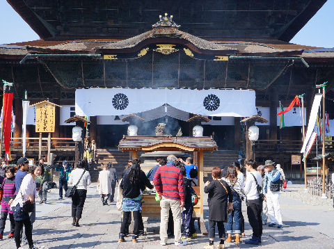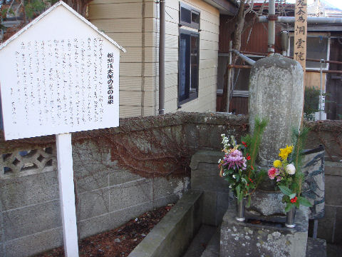 ここは時宗の総本山、お寺だが結構な人出、お守りなども売っていて神社の専売特許ではなくなっている。板割の浅太郎の墓があるとの表示で寄り道して見学、あの清水の次郎長の子分だが出家して坊さんになったと説明あり。 |