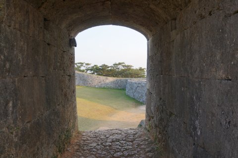 沖縄城廻ツアー:A座喜味城跡2つ目の城は座喜味城、ここにもアーチ門がある。 |