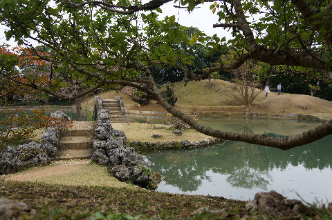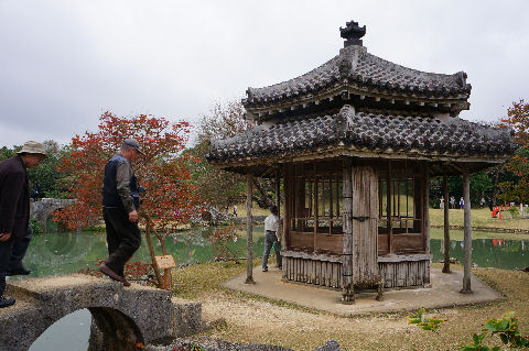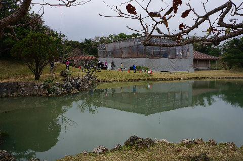 沖縄城廻ツアー:D識名園(接待所跡)2日目の最後は中国から国王交代の度にやってきた中国皇帝の使節(500人が半年滞在)を接待する施設として作られた識名園、残念ながら母屋は改修工事中で中を見ることはできなかった。 |